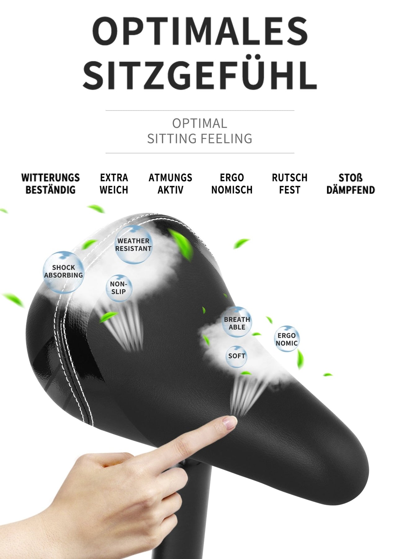 gut gepolstert bietet der Sattel maximalen Komfort. Der Sattel ist aus hochwertigen Bezügen gefertigt, daher ist er rutschfest, wasserdicht und verschleißfest.