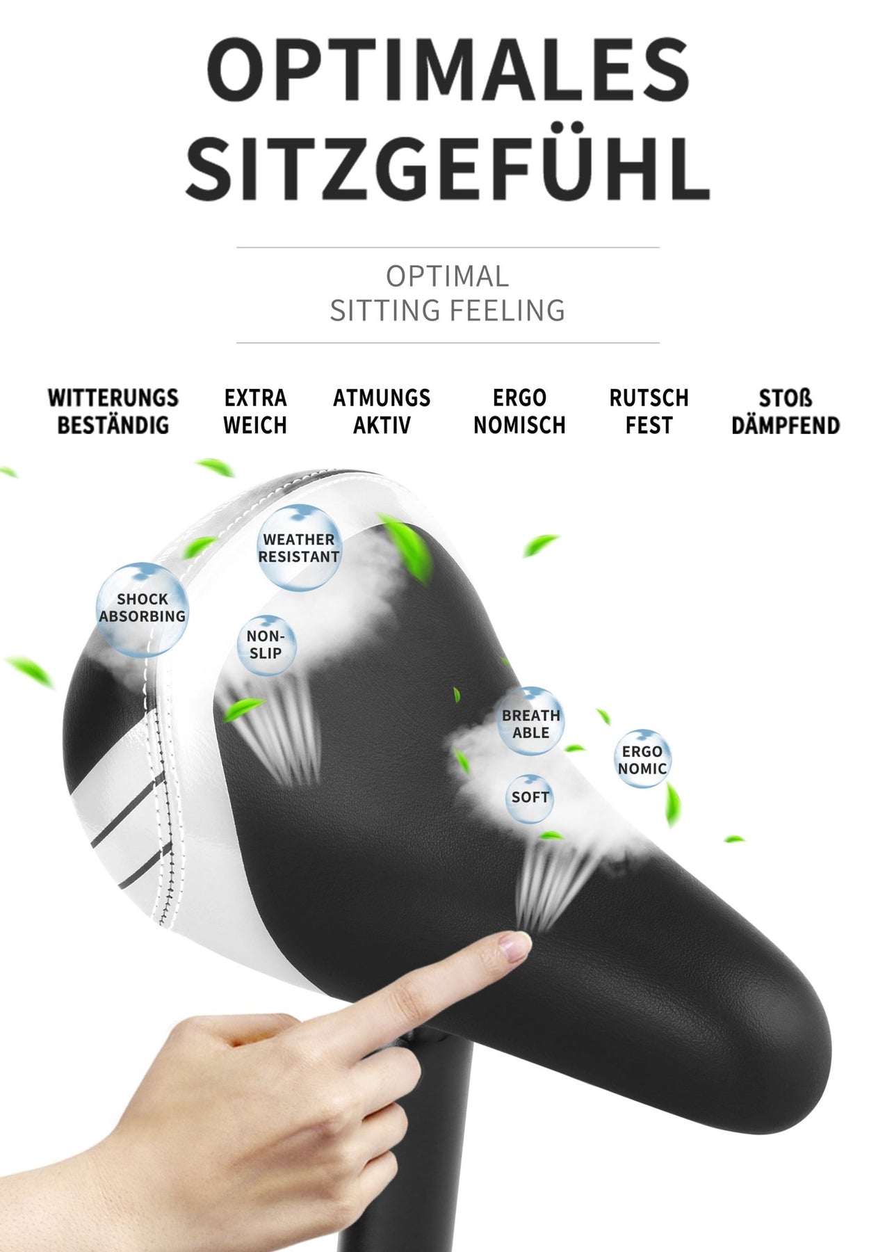 gut gepolstert bietet der Sattel maximalen Komfort. Der Sattel ist aus hochwertigen Bezügen gefertigt, daher ist er rutschfest, wasserdicht und verschleißfest.