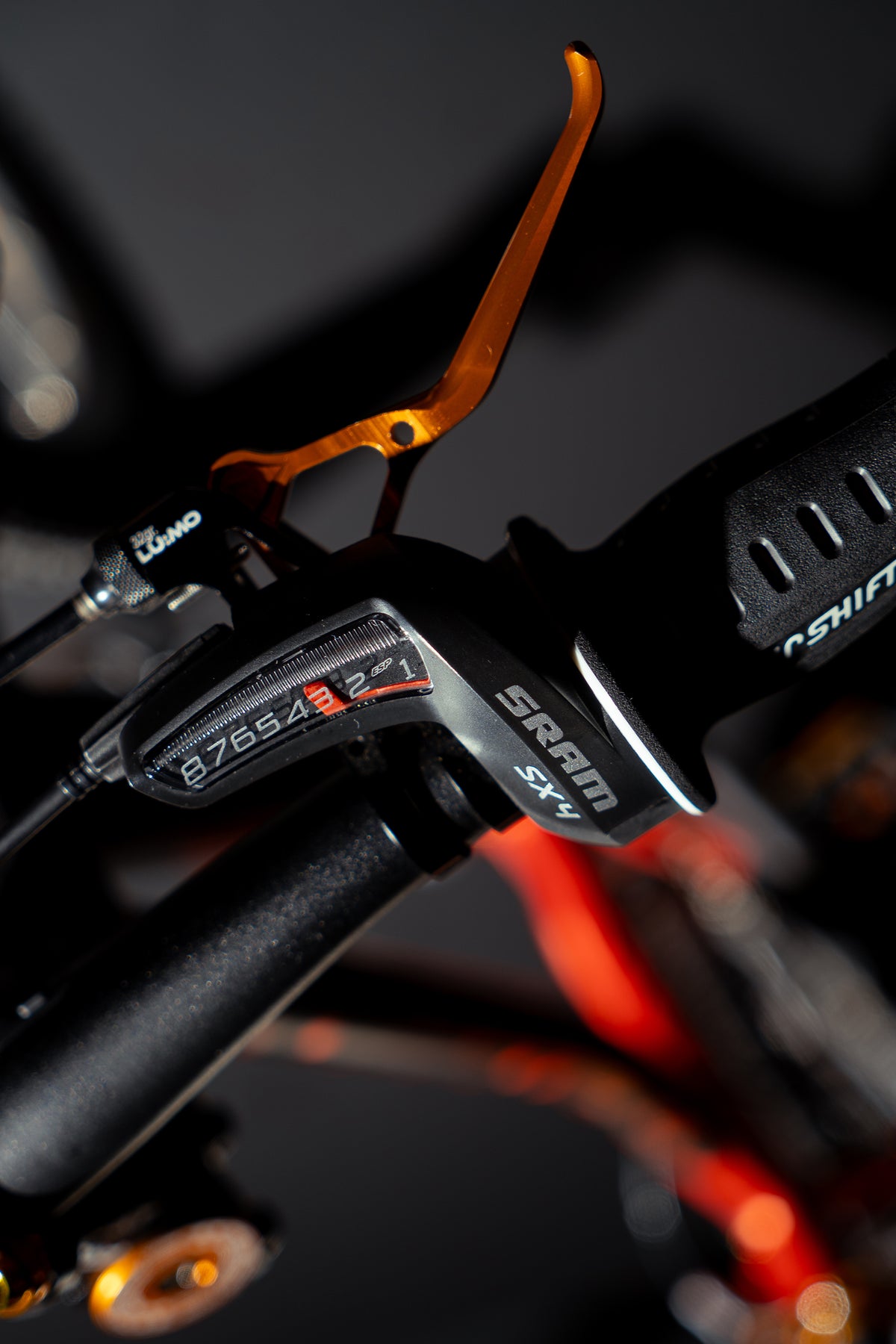 • Bremshebel: LU:MO CNC 32g, 3-Finger, verstellbar, kindgerecht