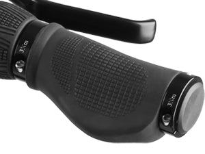 Kindgerechte Ergo-Lenkergriffe mit Handballenauflage, die durch doppelte Verschraubung und rutschfeste Eigenschaften für angenehmen Halt sorgen.