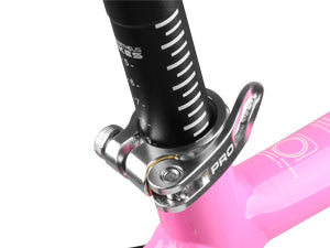 Ergonomisch angepasster Soft-Sattel und einzigartige Alu-Sattelstütze mit eingravierter Skala.