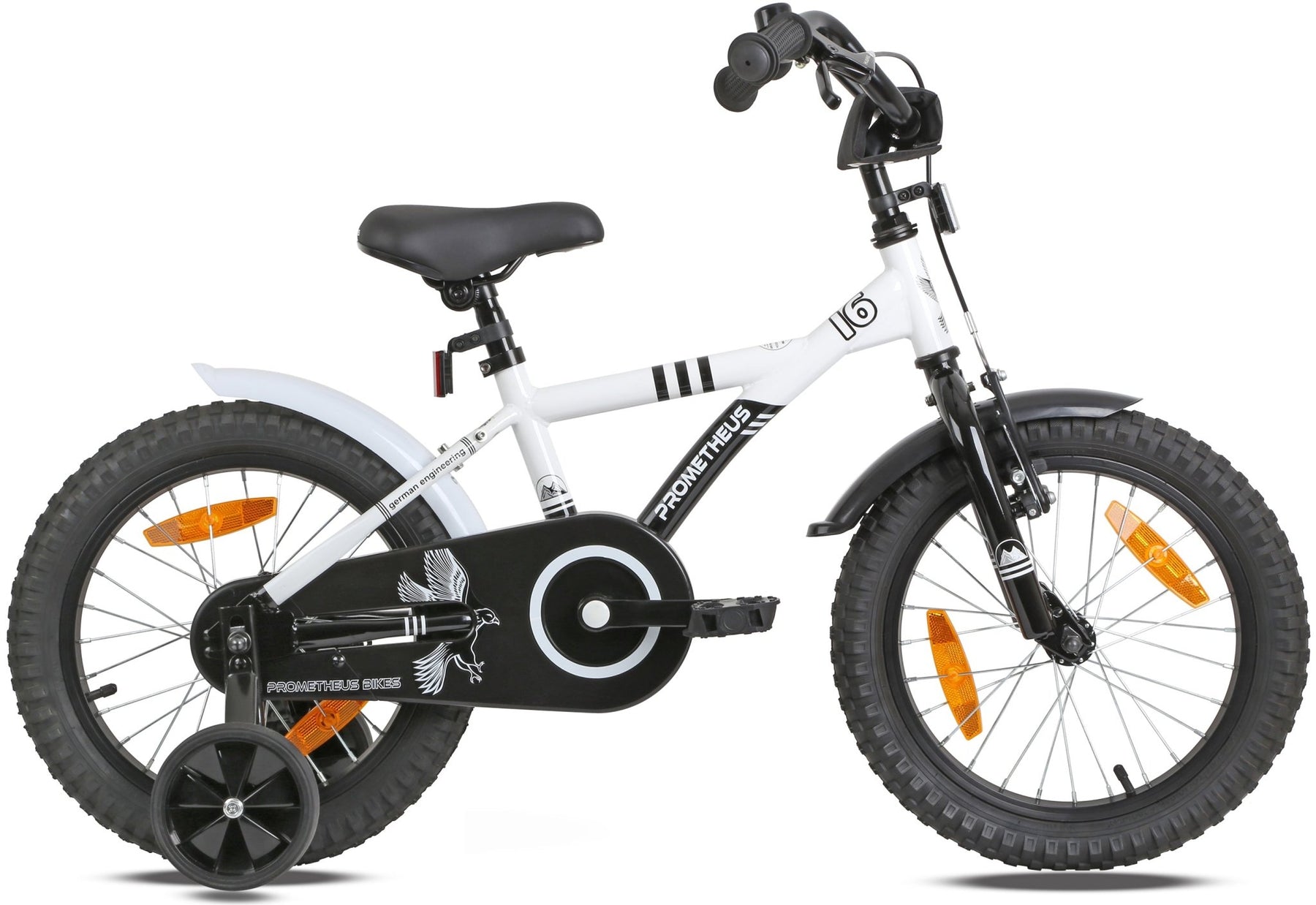 Kinderfahrrad 16 Zoll ab 4 - 5 Jahre mit Stützräder in Weiß & Schwarz – Kinderfahrrad 16 Zoll von prometheus - bikes | prometheus - bikes