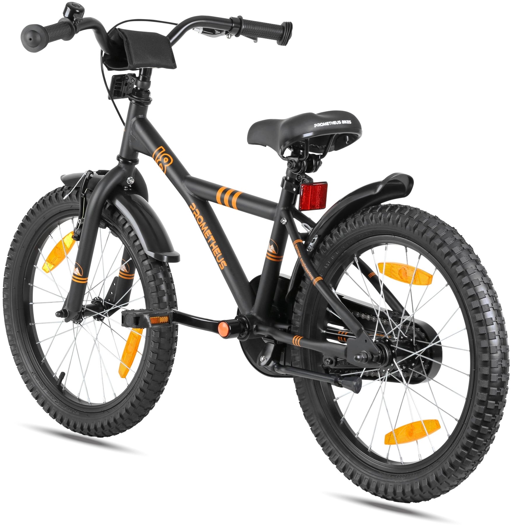 Kettenschutz, Schutzblechen und extra großen Reflektoren rund um das Kinderrad.